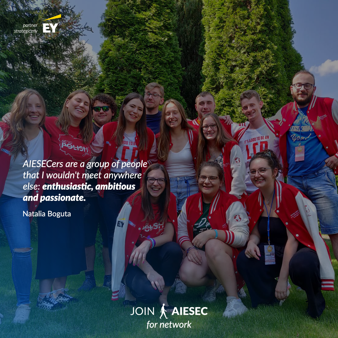 Jeśli jesteś studentem i chcesz zdobyć pierwsze praktyczne doświadczenie, zdecyduj się na przynależność do międzynarodowej organizacji studenckiej AIESEC. Jesteśmy grupą zaangażowanej społecznie młodzieży, której zależy na rozprzestrzenianiu wśród społeczeństwa takich haseł jak zrównoważony rozwój, aktywne przywództwo i pokój na świecie.