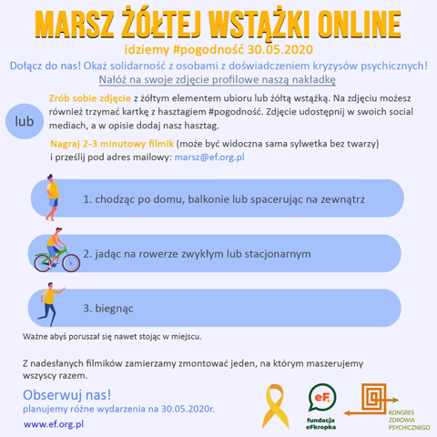 Organizowany od 2017 roku Marsz Żółtej Wstążki odbywał się w Warszawie, a rok 2020 miał być pierwszym, w którym marsze o godność osób doświadzcajacych trudności natury psychicznej mialy odbyć się również w innych miastach Polski. W związku z tym w zastępstwie maszu tradycyjnego, jego organizatorzy zachęcają do angażowania się w wydarzenia on-line, oraz publikowanie krótkich filmów i zdjęć z żółtym akcentem i hasztagiem #pogodnosc. W tegoroczną akcję zaangażowali się także pracownicy Kliniki Psychiatrii naszej uczelni.